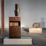 Die Form ist da, aber sie hat noch nicht ihre Bedeutung. Mit der Oberfläche und Farbe, dem Aufbau mit einem Nachtisch als Sockel, geschieht eine Entscheidung. Der erste Schachzug nach der Eröffnung, eine Richtung.